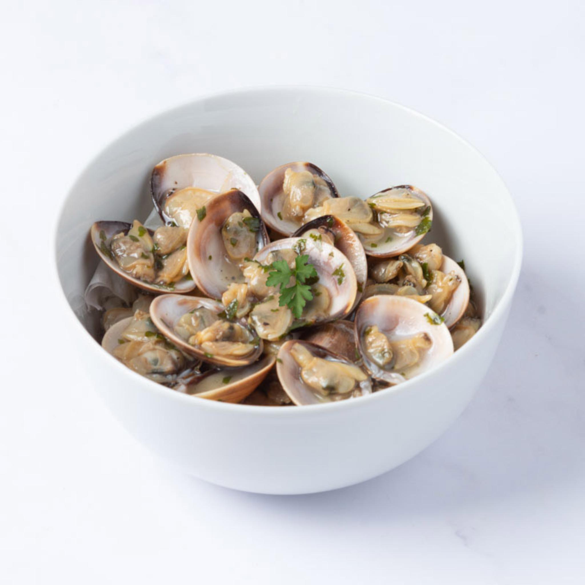Sugo alle vongole della tradizione, preparato con aglio e pomodoro, ricco di sapore.